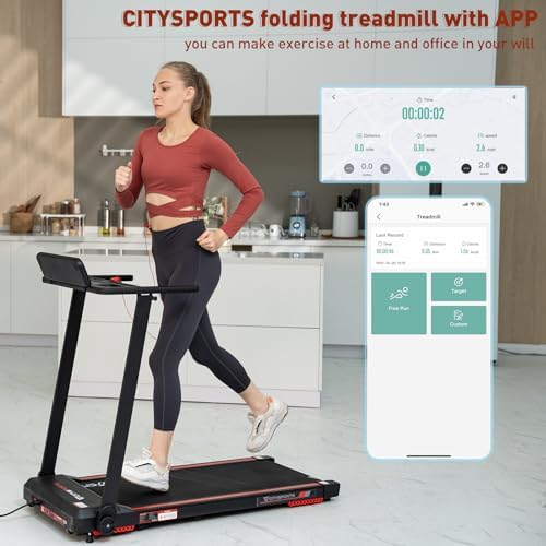 【 Anti-slip Treadmill Belt with APP】 – Home Treadmill with shock absorption to relieve the stress of knees, Treadmill has a multy layer treadmill belt, and built with a high-density lawn texture belt that absorbs shock for premium comfort with the non-slip feature, provides you with a strong cushioning effect and protects your knees, ankles, waist and neck joints, making your exercise safer and more comfortable.