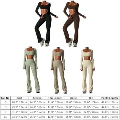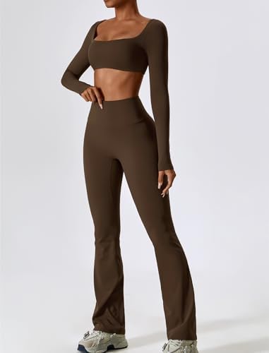 Womens Workout Sets Scrunch Flare Leggings Long Sleeve Square Neck Workout Top