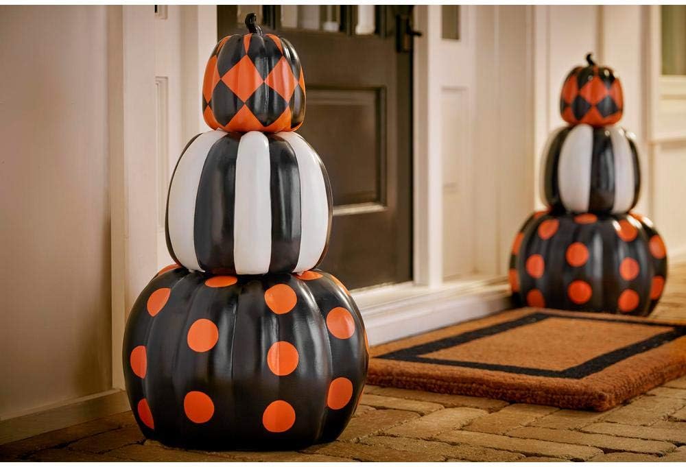 Bring the joy of the season to your home with the Halloween 3-Stackable Pumpkins decoration that offers a fun, special look. Easy-to-fit in any area, these hand-crafted and realistic hand-painted looking pumpkins complement Halloween decor. Designed for versatility, they can be enjoyed indoors or out and make an eye-catching statement that matches the spirit of the season.