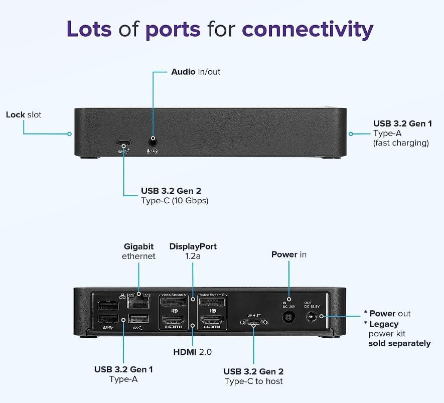 Includes USB-C DV4K 100W Universal Docking Station-6X3S6U3(USB 3.2 Type C wired host universal DV4K docking station with 100W power deliver;Thunderbolt 3 compatible / 4K support up to 3840 x 2160 resolution;01 USB 3.2 Gen 2 Type-C(10 GBPS) / 04 (1 fast charging) USB 3.2 Gen 1 Type-A;02 1.2A DisplayPort ports with 4K support/2 HDMI 2.0/ RJ45 GE/Headphone input)