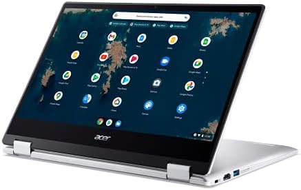 The Acer CP314-1H-P9G7 2-in-1 laptop has a 14-inch HD display, 4GB of RAM, and 128GB of storage, providing portability and versatility with tablet and laptop modes in a sleek silver chassis.