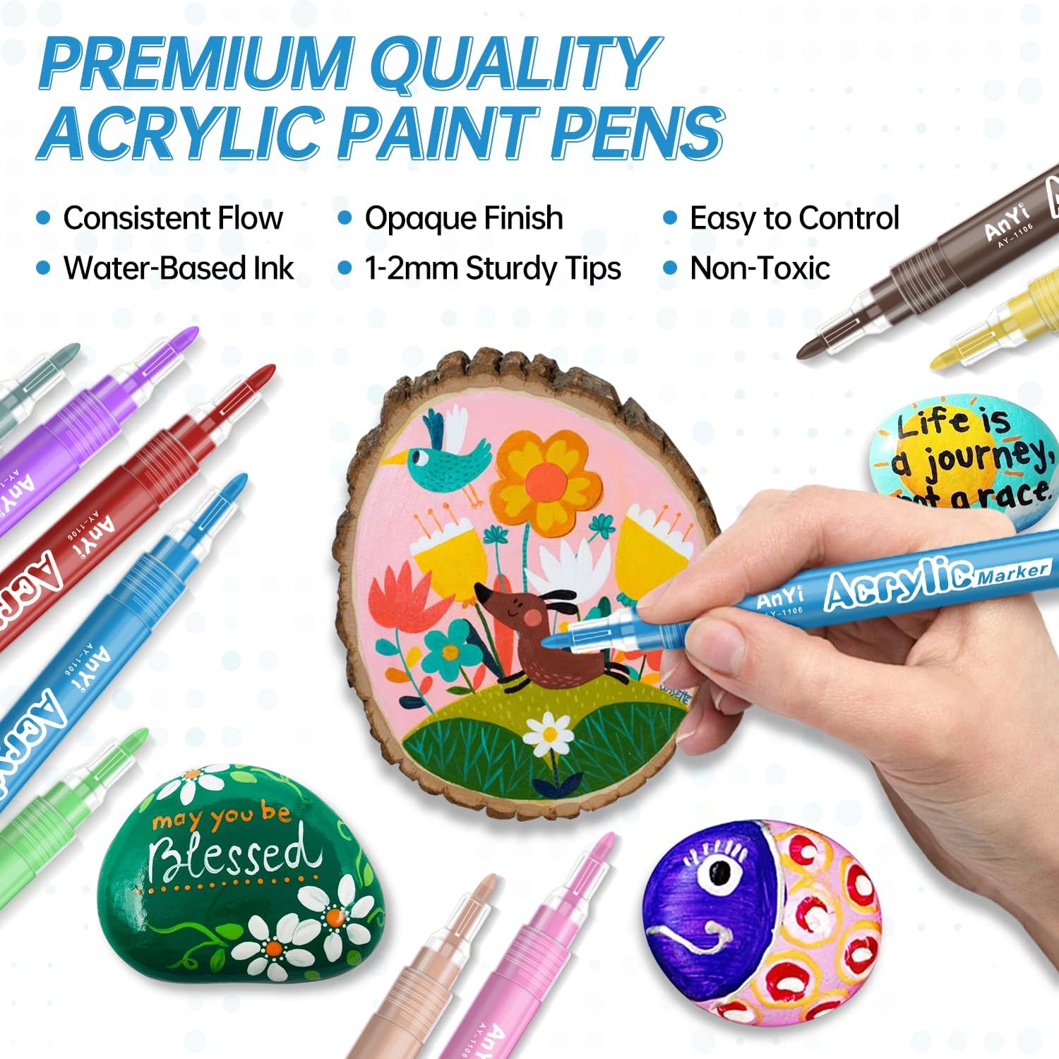 PREMIUM MATERIAL QUALITY-(PERMANENT & SAFETY): Acrylic Paint Markers Pens, ideal for holiday-themed projects like Halloween and Christmas gifts, are made of highly pigmented acrylic paint. Vivid, highly pigmented acrylic ink dries quickly to produce a very durable opaque and glossy finish on light and dark surfaces. The paint is non-toxic, water-resistant, and UV-resistant, making it perfect for indoor and outdoor use. You can even mix the colors