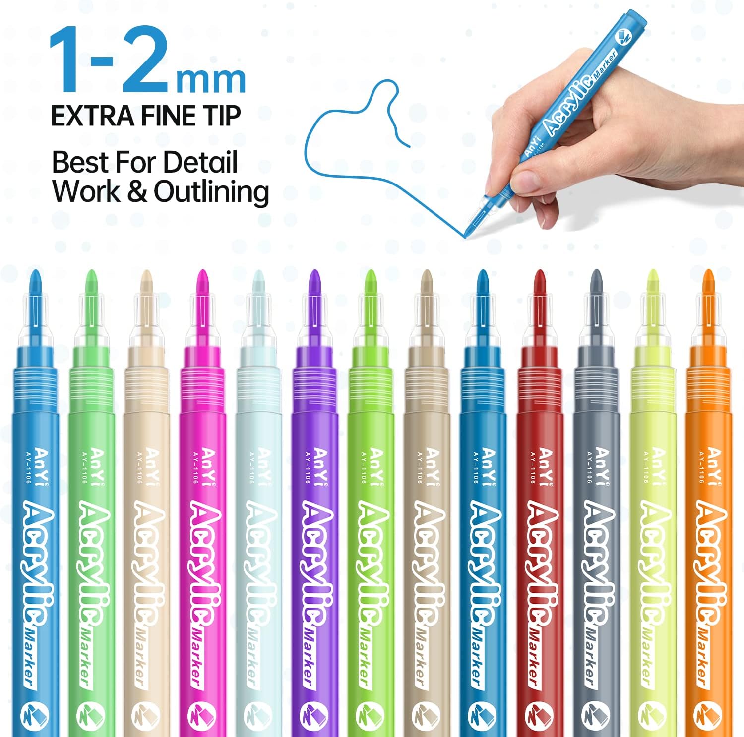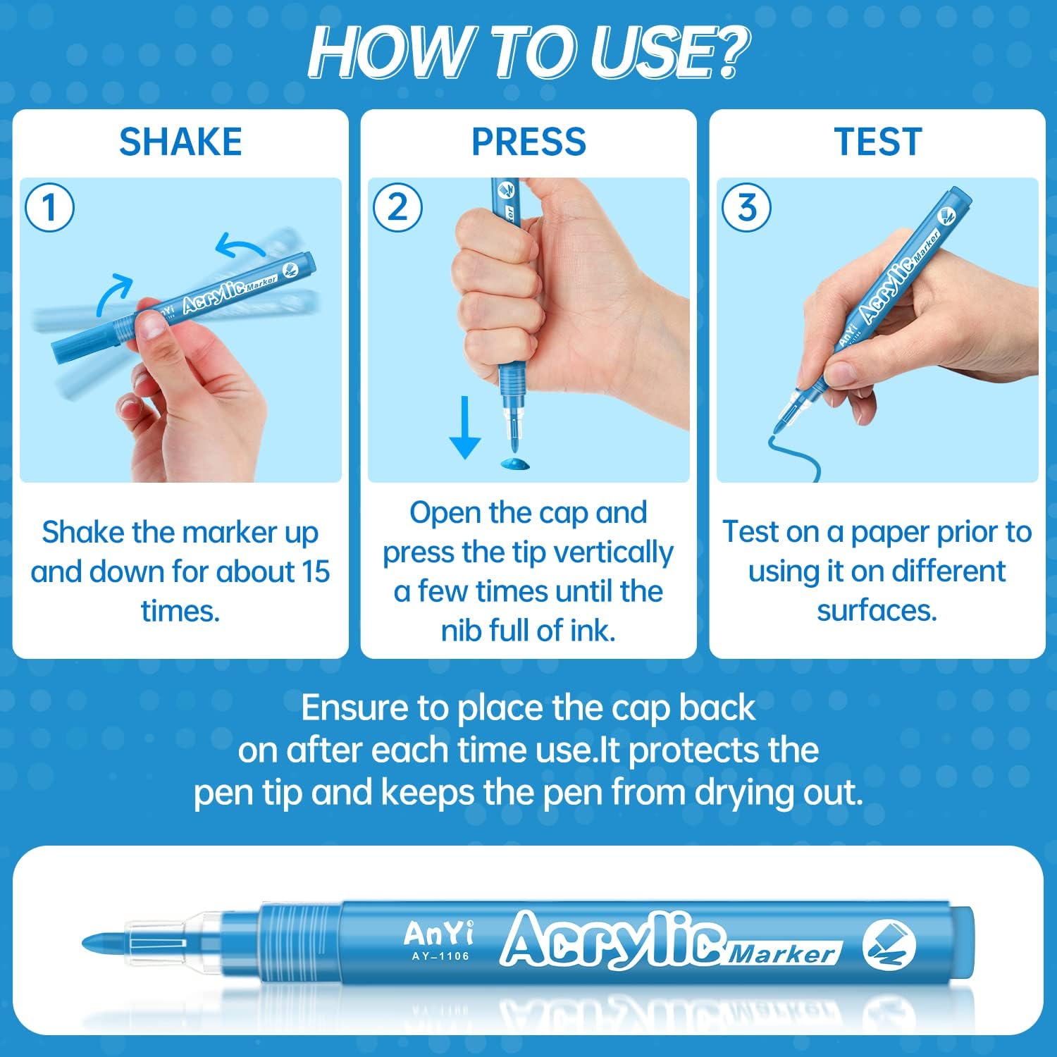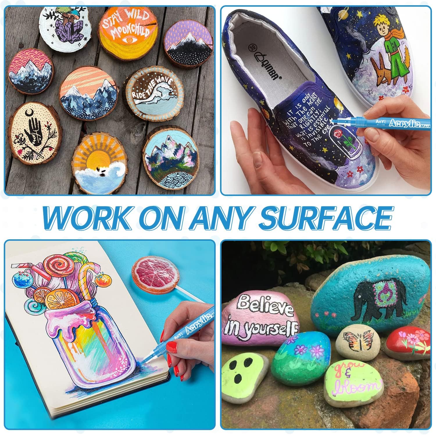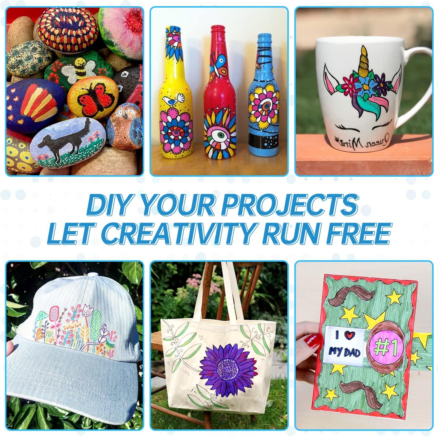 36 VIBRANT COLORS: Acrylic markers for rock painting include 36 kinds of upgrade bright colors:Widely use on fabric, textile, canvas, metal, pottery, treated wood, plastic, stone, terra-cotta, polymer clay, rock & more. Resistant to water, fading, and abrasion. Realize Your DIY creativity with these colorful glass painting pens