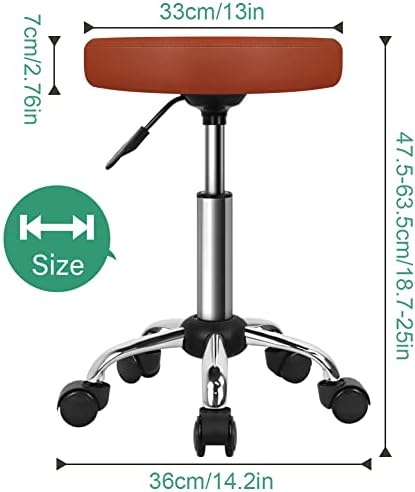 Height adjustment range of the rolling salon stool:18.7in – 25in. The seat size is 13in X 2.76in.Suitable for: office/salon/home/school/library/studio/cafe/massage table etc.