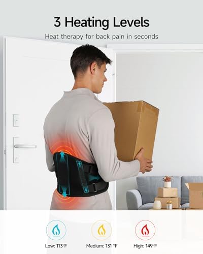 【3 Heating Levels and 5 Vibration Massage】The back massager with heat has 3 heating levels and 5 intensity levels. Heating and massage function can work at the same time or alone. Temperature setting: 45℃-55℃-65℃. The back massager for back pain relief has 2 powerful massage motors and 5 adjustable vibration intensities for your free choice. Heating technology can provide targeted heat therapy, combined with the vibration massage can give you the most effective relief for sore/painful areas.