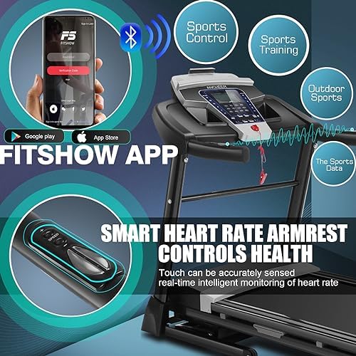 【Large Belt Area &APP Connection】The AUTO incline treadmill with 47.2″ x 17″ belt area which gives plenty of space for running,300 lb Weight Capacity.Folding treadmill Integrates with the FitShow APP via bluetooth for easy operation and custom routines.(12 preset programs ranging from beginner to advanced).