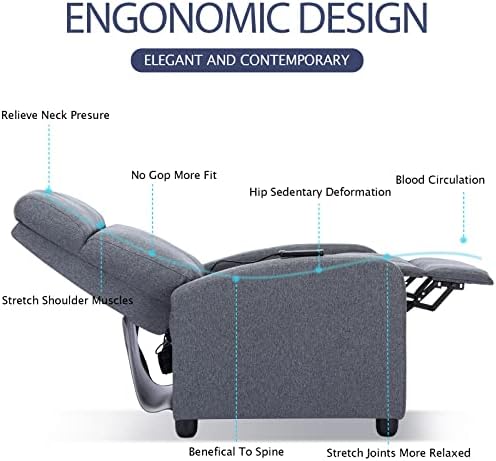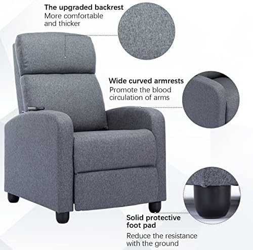 Manual Recliner with Massage: The upholstered recliner has an adjustable backrest between 90-150 degrees. Sit and relax by your own strength to recline the chair, for comfortably rest, watching TV or lying down, our Recliner chairs fit your different need perfectly.