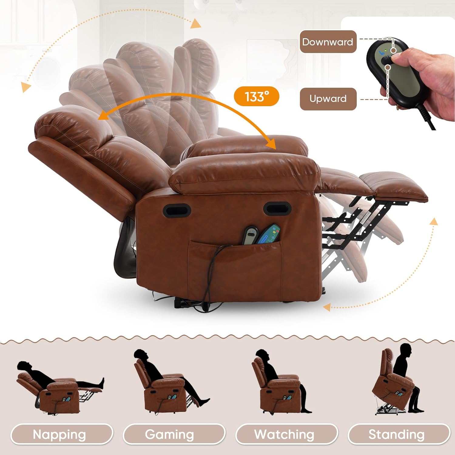 【Fabulous Comfort】Its Backrest, armrest, and seat are both thick padded with high-density sponges and covered with breathable pu leather which can provide your head and neck a better rest. When the recliner is adjusted to a specific angle(120°-135°, Max 135°), the body can tend to a state of zero gravity, which provides a stress-free feel for optimal relaxation.