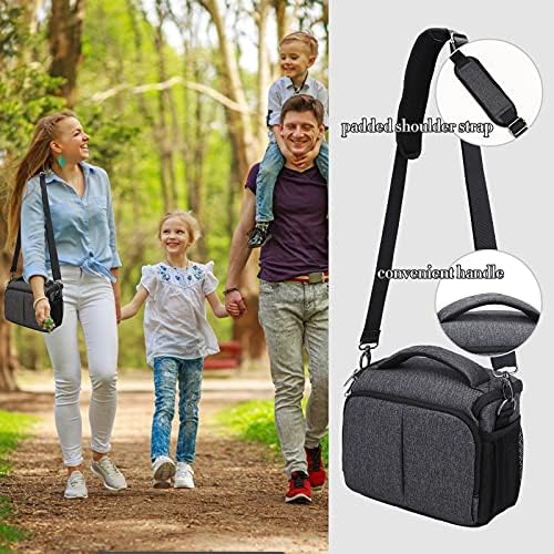 【Large Capacity】 The camera shoulder bag has 3 compartments and 6 mesh pockets.The camera case / bag is compatible with Canon Nikon Sony and other brand cameras; It holds and protects 1SLR / DSLR camera bodies, 2 lenses, or other items.The removable inner cushion padded dividers can be adjustable as you need and protect your camera and lens from shock and scratch.