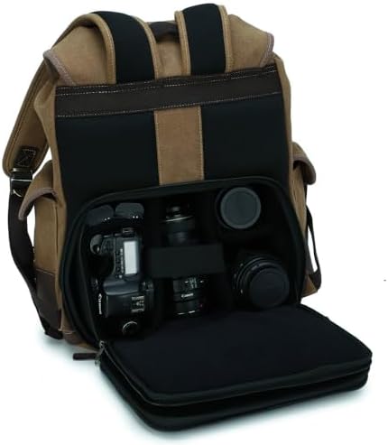 【Comfortable Camera Backpack】: This camera bags uses high quality waterproof canvas material with high quality leather, fashionable and advanced,wear-resistant, tear resistant, durable, rainy days can also be a good protection of the items in the backpack; The backpack’s thick and breathable shoulder strap is adjustable, and the appropriate length is conducive to reducing the pressure on the shoulder. The back of the backpacks uses a soft and thick breathable cotton pad to protect the spine.