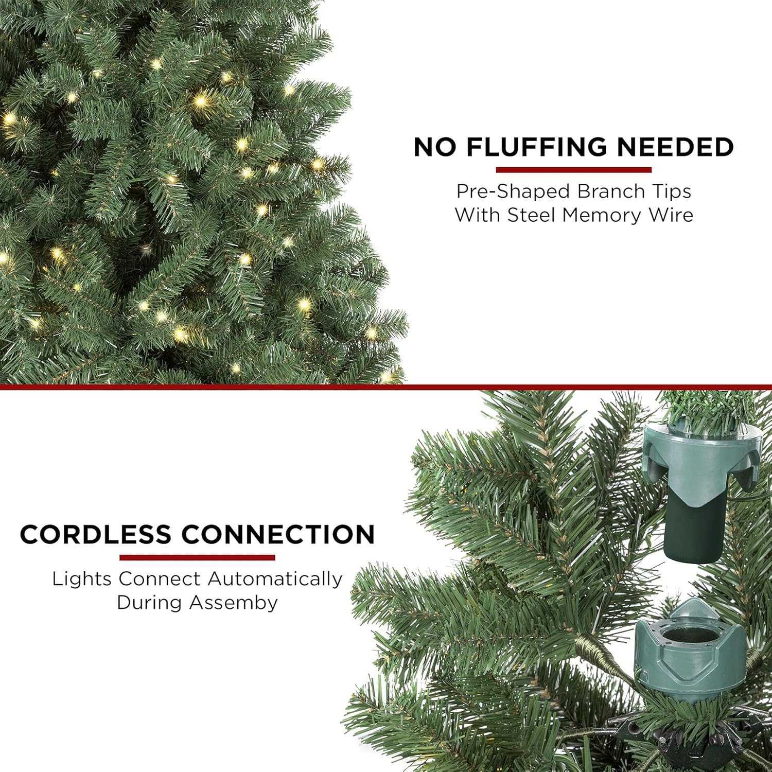 INSTANT SETUP EASY ASSEMBLY: Enjoy a fully fluffed, festive tree in as little as 2-5 minutes when out of the box; memory wire steel branches maintain their shape and eliminate the hassle of fluffing