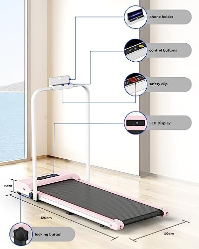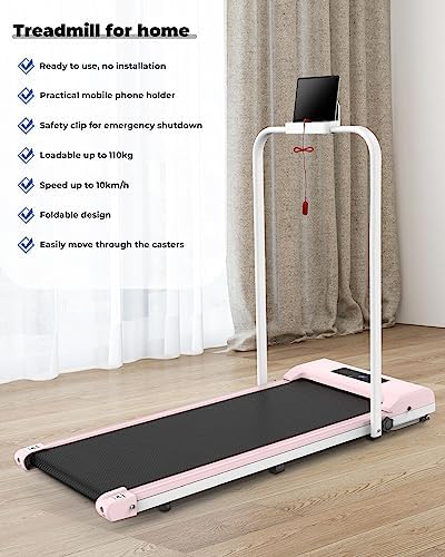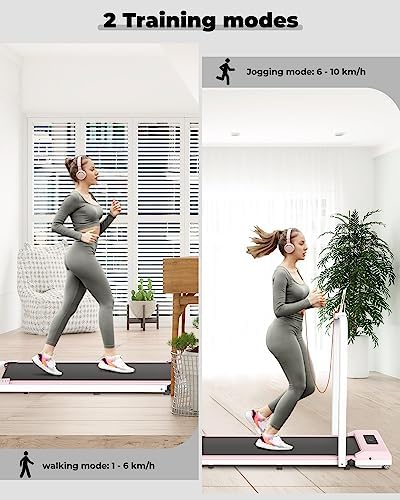 2 in 1 Foldable Design – This folding treadmill provides two exercise modes(Walking and Running Mode)and an adjustable speed of up to 10km/h to meet your preference. The armrest can be used as support while walking.
