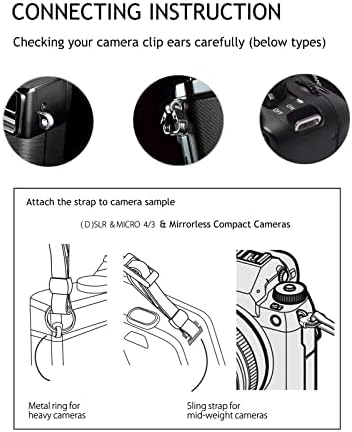 ◆CONNECTING INSTRUCTION◆ Supplied with a pair of firmly metal ring attachments for connecting with cameras have round hole ears. Also the nylon belt can connect through strip or triangle clip ears. 【Checking your camera clip ears carefully before buying.】