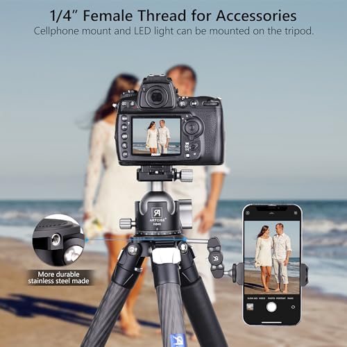 Carbon Fiber Tripod with 46mm Low Profile Ball Head and Stone Bag ARTCISE Heavy Duty Travel Camera Stand for Canon Sony Nikon DSLR Camcorder,Max Load 55lbs(Extra Gift:Stone Bag, Magic arm,Phone Clip)