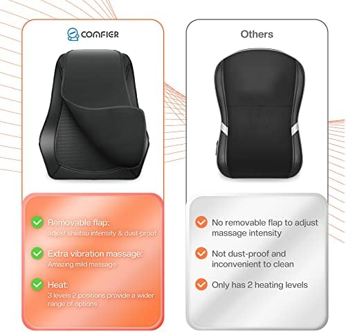 ✅ 【Upgrade Massagers for Back and Neck】Our massage pillow has larger size15.7×12.6×4.3 inch, which is 6.6 inch longer than ordinary one. Perfectly fits the neck and back curves to provide the most comfortable massage experience. Most uniquely, Comfier electric back massager are equipped with detachable flaps that can make massage more soothing and comfortable. Also, the flap prevents massager from dust accumulation,making it easy to clean and convenient to store when not use.