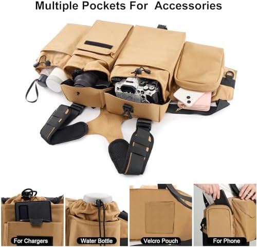 ✅【Durable & Secure Protection】The durable fabric protects your gears, while the soft interior ensures the safety. The waistband can securely attach the bag to avoid drops. Keeping your camera, lens and binoculars secured to your body is important, then you could use your hands for other things. Durable buckles and webbing for long lasting use. Strong velcro and buckles can keep your gear safe. Cwatcun camera bag is perfect for long-lasting performance in harsh environments.