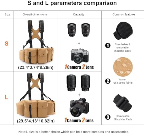 ✅【Well Organized Capacity】This camera bag has dimensions of 23.4″L x 3.8″W x 8.3″H, ensuring lightweight portability. It can accommodate 1 DSLR and 2 lens or a binoculars, organize your camera gear, lens, binoculars and accessories exactly as you need conveniently