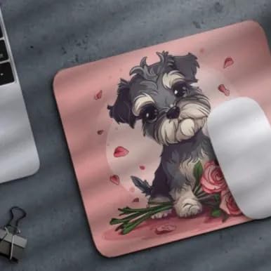 Are you looking for a heartwarming and adorable gift that captures a cute puppy for a dog lover? Look no further! Introducing our Pink dog with Flower Bouquet mouse pad with a variety of dog selections, the perfect blend of style and functionality for your workspace. At first glance, the permanently dyed design of the Pink Flowers Pup Mouse Pad captures attention with its charming pink hue and adorable pup pattern. This visually appealing feature adds a unique and lively element to your workspace, making it more vibrant and cheerful.
