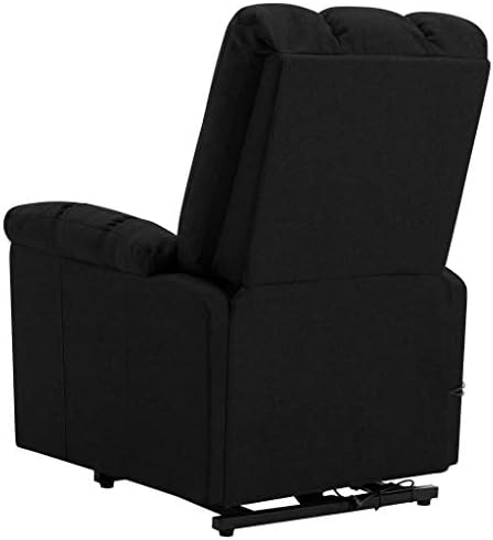 Color: Black. Material: Fabric (100% polyester), plywood, iron. Filling material: PP cotton. Overall dimensions: 29.9″ x 36.2″ x 40.2″ (W x D x H). Seat dimensions: 21.7″ x 20.5″ (W x D). Seat height from the ground: 19.9″. Lifting and reclining function. Includes a USB and hand control. With side pocket. Input voltage: AC 100-240V. Massage voltage: DC 5V. Options: Massage and heating. Type of massage: 6-point vibration massage. Adjustable backrest and footrest. Assembly required: Yes.