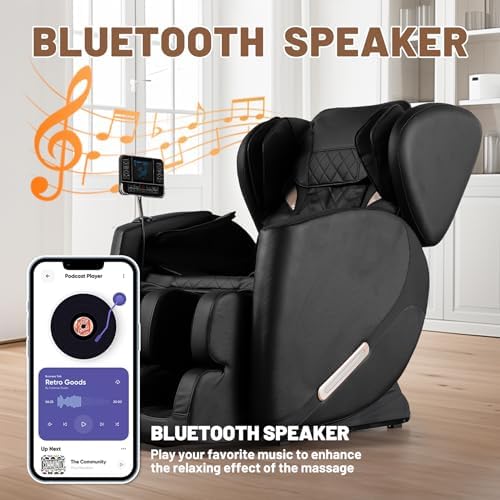 【 Humanized Design 】 4.5-inch retractable footstool, making it easier for the calves to fit perfectly with the calf massage airbag, suitable for heights of 5-6.1 feet, equipped with mobile wheels, allowing the massage chair to easily move to any place you want to place. Equipped with Bluetooth audio connection function, you can enjoy music during massage. Both sides are equipped with breathing blue ambient lights, which can create a comfortable and relaxing environment during the massage process.