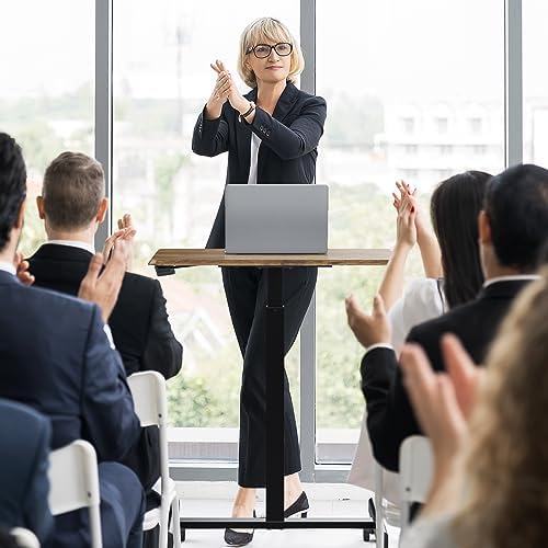 【Lockable Mobile Desk】4 silent wheels can easily help the mobile standing desk move smoothly to any corner of the home. Just lightly step on the 2 lockable wheels and it stays in place in no time.