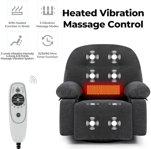 Full-body Massage & Heating: Enjoy customized relaxation with 8-point massage system, 5 modes, and 3 intensity levels. Includes lumbar heating function for fatigue relief and improved circulation.