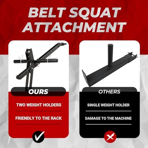 【Easy to Assemble】: Even though the ER KANG Belt Squat option weighs 25.7 lbs, it is still easy to attach to your rack. Simply slide the mounting bracket into the upright and use the included plug to lock it into place. Just needs less than 3 minutes. Note: the belt is not included.