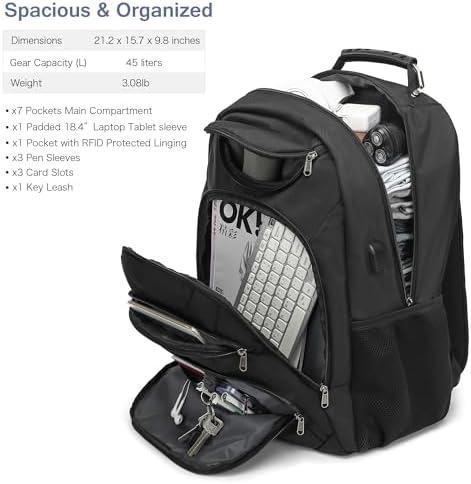 ERGONOMIC DESIGN:Experience ultimate comfort with the U-shaped ventilation, padded shoulder straps, and an adjustable chest strap. The back luggage strap lets you slide it over your suitcase, and the rugged handle ensures a sturdy grip. This backpack isn’t just a companion; it’s your travel game-changer.