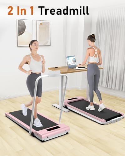 【Foldable Treadmill with Handle 2 in 1】The 2.5HP folding Small walking pad with Handle, has 50.4”x22”x4.7” mini size, 300 Lb capacity, can be placed under the sofa or any corner of the room. 40.6 “x15.4” large running area, brings you comfortable Walking, Jogging Running experience, suitable for home, office, yard, gym and so on.