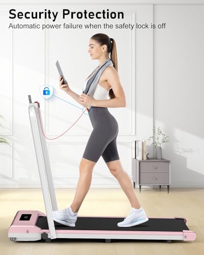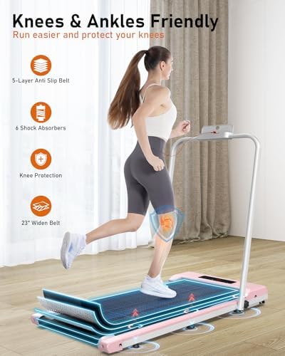 【Non-slip Running Belt & Safety Lock】 The 5-layer non-slip texture running belt(40.6″ x15.4″) provides an effective and safe cushion for your knees and muscles for a better running experience. The foldable treadmill is equipped with a safety lock so it can stop immediately in emergency situations-Double safety protection.