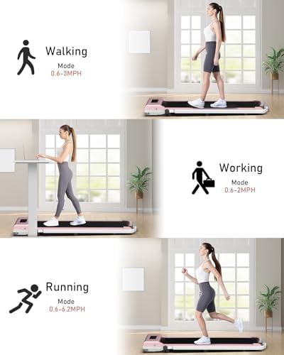 【0.6-6.2MPH for Walking or Running】The speed range of the desk treadmill is 0.6-6.2mph(1-10km/h), can meet the needs of you and your family. When you press “+” or “-” with the remote control, the speed of the walking pad will increase or decrease at 0.2 mph intervals.