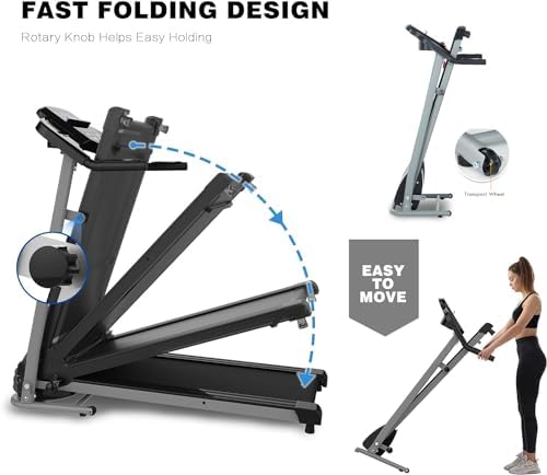 Foldable Treadmill with Incline for Home, Folding Treadmill for Small Spaces, Low Noise, Knee Protection, Max 2.5HP 250 LBS Capacity…