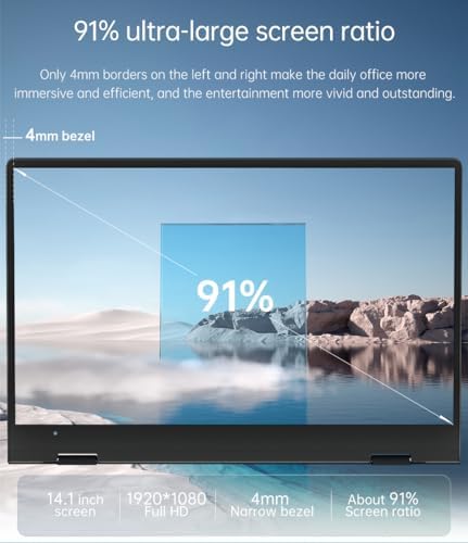 14.1 inch FHD display (1920*1080) with 0.2 inch bezel and 91% screen-to-body ratio.