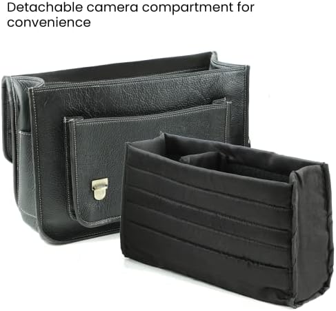 EASY TO CARRY – The camera bag features a removable full leather strap with a shoulder comfort pad which can be easily adjusted to preferred lengths. The bag can be carried by the hand handle, worn on the shoulder or cross-body.