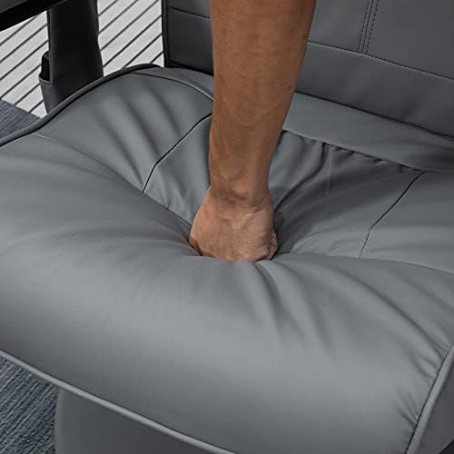 Color Gray; Material PU Leather, Steel, Foam; Chair Size 30.25″ L x 28.75″ W x 37.5″ H; Reclining Size 45.25″ L x 28.75″ W x 35.5″ H; Seat Size 19.75″ W x 20.5″ D; Seat Height 17.75″ H; Footstool Size 17″ L x 17″ W x 16.25″ H; Weight Capacity 264 lbs. (Recliner), 176 lbs. (Ottoman) Input 100-240V, 50Hz; Output DC12V, 1.2A, 14.4W; Item Label 700-139GY