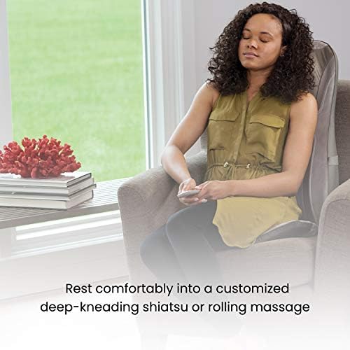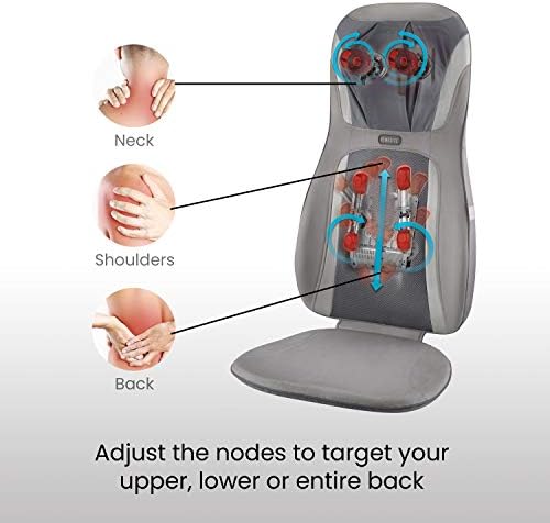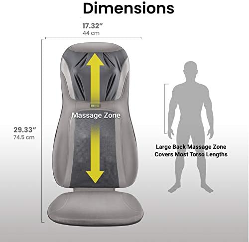 CUSTOMIZABLE MASSAGE: The Shiatsu Elite Pro Massage Cushion offers both a kneading shiatsu and rolling massage. You can use the controller to select from 3 massage zones (upper, lower, or entire back), or pinpoint a specific spot for targeted relaxation. 3 preset massage programs offer unique massage experiences for stress relief. The massage cushion adjusts to your perfect height to ensure comfort and optimize the massage. You can also choose to reverse the direction of the massage nodes