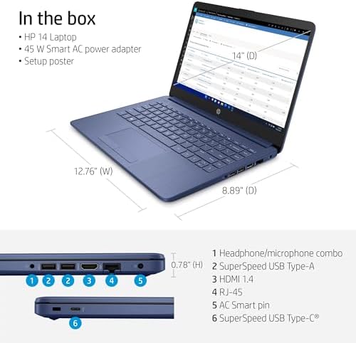 【Display】14.0-inch diagonal, HD (1366 x 768), micro-edge, BrightView. With virtually no bezel encircling the display, an ultra-wide viewing experience provides for seamless multi-monitor set-ups. HP True Vision 720p HD camera with integrated dual array digital microphones, provides video chat with vibrant clarity, even in low light. Meet your office, online class and webinar needs.