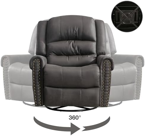 360 DEGREE SWIVELING WOODEN FRAME – – The bottom of this recliner features a sturdy and stable metal frame that swivels 360 degrees. The stylish design of the wooden frame rivets armrests provides a premium feel to the home.