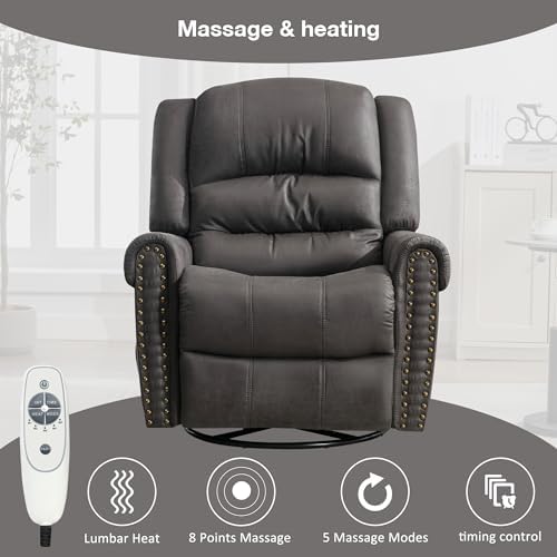 VIBRATING MASSAGE & HEAT — This swivel recliner chair has 8 massage points and 2 different massage intensities to massage the calves, thighs, lumbar area and shoulders. The lumbar area with tropical massage function points allows you to promote blood circulation while massaging.