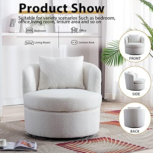 INZOY Swivel Barrel Chair with Lamb Wool Fabric, Swivel Accent Chair Sherpa Chair with Plump Pillow, Comfy Round Accent Chair for Living Room, Swivel Round Chair with Removable Cushion, White