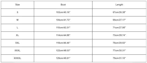 Size:XXL━━Bust:118cm/46.46”━━Length:75cm/29.53”