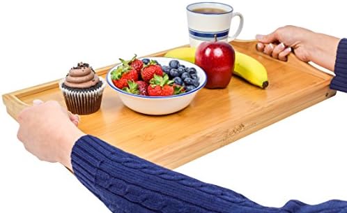 ✅ LARGE SIZE– Dimensions: 20″ (L) x 12″ (W) x 2.5″ (H) when folded, and 8″ (H) when standing. In other words, this Bamboo tray is the perfect size. Its large enough for your breakfast or dinner essentials. Also, this bed table is suitable for 11″, 13″, 15″, and even larger laptops.