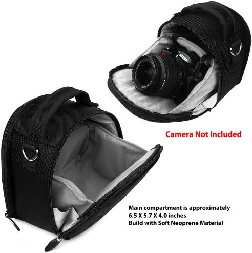 Protect your camera with our Nylon stylish shoulder bag. Compact and friendly to travel with. Main zipper enclosure is build with half an inch of soft cushion cover with non-scratch soft microfiber material, approximate interior dimensions 6.5″ x 5.7″ x 4″. Accessory enclosure is build with 3 mesh pockets suitable for memory cards, batteries, charger and more. While on the flap there is a small zipper compartment suitable for your small accessories, making it easy for maintaining your stuff organized and from falling out when accessing any of the compartments. The Nylon bag was build compact, stylish and comfortable to use. Overall this is the one carrying case you can take with you where ever you go when ever you go! Case is very user-friendly! (Approximate Exterior Dimensions: 7.3″ x 9.5″ x 4.8″)
