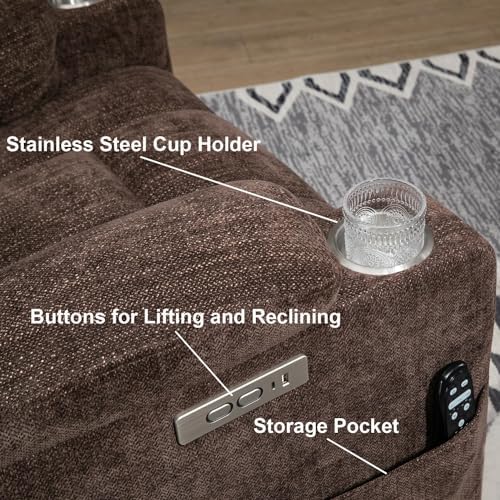 LETSHOME Electric Large Power Lift Chair with Massage and Heat for Elderly, Overstuffed Wide Recliners, Heavy Duty Motion Mechanism with USB and Type C Ports, 2 Steel Cup Holders,Brown