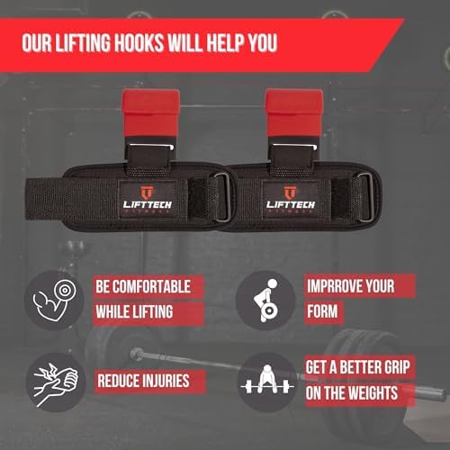 Lift Tech Fitness COMP Lifting Hooks (Pair of 2) – Wrist Hooks for Weightlifting, Pull Ups & Deadlifts for Home or Gym Workout – Neoprene Weight Lifting Hooks for Men and Women – Black