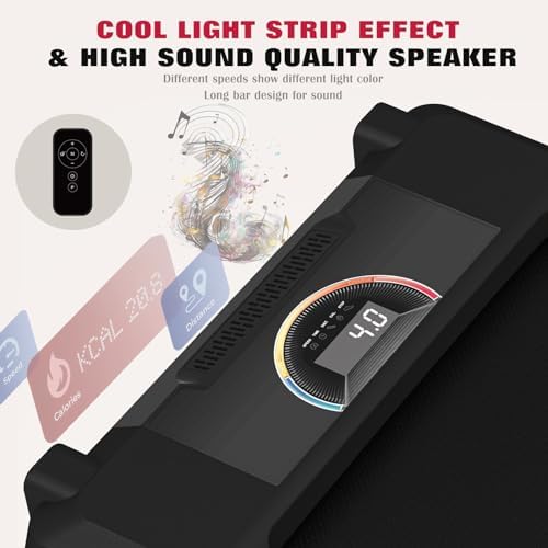 【12 EXERCISE MODES FOR EASY MOVEMENT AND STORAGE】:There are 12 exercise modes for you to choose from, these easy-to-use exercise routines help improve cardiovascular fitness, enhance physical fitness, burn fat and keep your body healthy. Use the wheels to move it to where you want to put it, this treadmill weighs 50LB and is only 5.9 inches thick, easy to store under your bed or sofa.