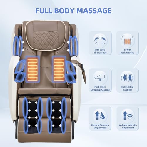 Massage Chair Full Body Recliner, Zero Gravity with Heat and Shiatsu Foot Massager,Full Body Airbag Massage Waist Heat Bluetooth Speaker,MF600 in Beige