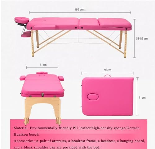 Application:Home Office, Bedroom, Dining, Outdoor, Hotel, Villia, Office Building, Hospital, School, Mall, Leisure Facilities, Warehouse, Workshop, Other, Storage & Closet SPECIFICATIONS : Product name:Beauty Chair Beauty Salon Facial Bed Dimensions(cm):L186*W71*H58-85cm Folded size:93*71*10.5cm Product Weight:20kg Product colors:Pink,White,Red,Black,Beige Material: PU+6cm mattress thickness + beech wood bed legs + steel cable drawstring Dynamic load-bearing : 250kg THE SET INCLUDES : 1 x folding massage table 2 x Armrest 1 x Headrest 1 x Carry bag 1x Hanging board