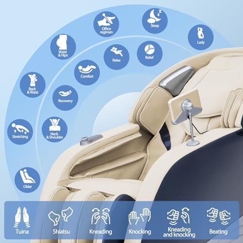 MassaMAX 2024 Full Body Massage Chair with SL Track, Zero Gravity, Yoga Stretching, Shiatsu, Heat, Foot Roller, Touch Screen, Bluetooth (MD908-Blue)
