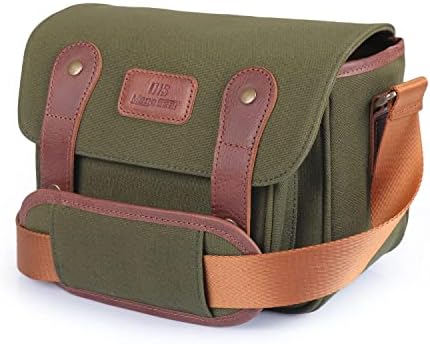 MegaGear Sequoia Canvas Bag Compatible with Canon, Nikon, Sony SLR/DSLR Mirrorless Cameras, Khaki Green (MG1974), PU Leather